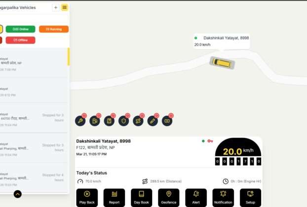 काठमाडौं, दक्षिणकाली — दक्षिणकाली नगरपालिकाले सार्वजनिक यातायात व्यवस्थापनलाई प्रविधिमैत्री बनाउने तथा यात्रुहरुलाइ सहज होस भन्ने उद्देश्यका साथ सार्वजनिक बसहरूमा GPS डिभाइस जडान गरी लाइभ ट्र्याकिङ सेवा सुरु गरेको छ। यस प्रणाली लागू भएसँगै अब स्थानीय बासिन्दा तथा यात्रुहरूले आफ्नो मोबाइलबाट बसको वास्तविक समयको स्थान, आगमन समय र रुट सम्बन्धी जानकारी सहजै प्राप्त गर्न सक्नेछन्। कसरी […]