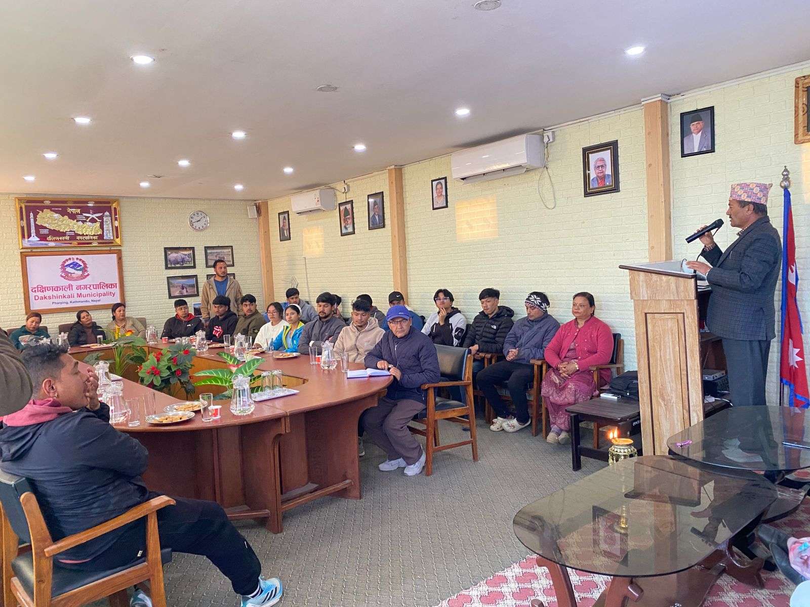 काठमाडौं। दक्षिणकाली नगरपालिकाले युवालाई स्वरोजगारमुखी तथा दक्ष जनशक्ति उत्पादन गर्ने उद्देश्यले सूचना प्रविधि आईटी सम्बन्धी तालिम सुरू गरेको छ। जेनिस सोलुसन प्रालिसँगको सहकार्यमा शुक्रवार नगरपालिकाको हलमा तालिमको समुद्घाटन गरिएको छ । तालिमको उद्घाटन सत्रमा मेयर मोहन बस्नेत, उपमेयर बसन्ती डंगोल तामाङ, प्रमुख प्रशासकीय अधिकृत राममणी काफ्ले, शिक्षा शाखा प्रमुख लक्ष्मण दाहाल, शाखा अधिकृत गिरीराज खनाल लगायत जेनिस सोलुसनका उपाध्यक्ष अमित जोशी तथा प्रशिक्षार्थीहरुको उल्लेख्य सहभागीता थियो ।